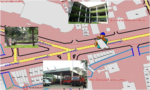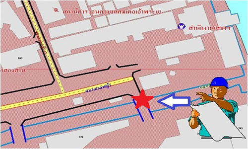 3. ลงตำแหน่งข้อมูล เช่น เมื่อลงตำแหน่งตู้โทรศัพท์ซึ่งอยู่ห่างจากทางแยก