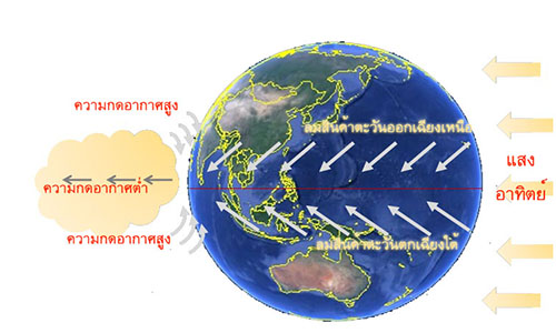 The trade winds are regular, seasonal winds generated by the existing atmospheric pressure around the Earth throughout the year. These winds blow consistently with moderate strength. The trade winds originate from the polar and subtropical regions, receiving unequal heating from the sun. The equatorial region receives more sunlight than other areas, making it a low-pressure area. Meanwhile, the subtropical regions (around 30 degrees latitude, both north and south) receive less sunlight, resulting in high-pressure conditions. This causes the trade winds to flow towards the equatorial region. However, due to the Earth's axial tilt and rotation, in the northern hemisphere (north of the equator), the winds come from the northeast, and we refer to them as the Northeast Trade Winds. In the southern hemisphere (south of the equator), the winds come from the southeast, and we refer to them as the Southeast Trade Winds.