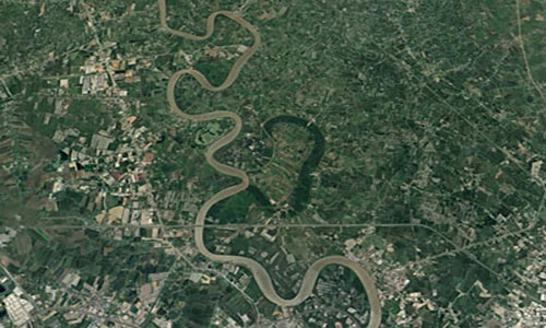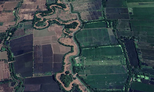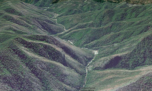 In the later stages of its life, the mountain range transforms into a wide, expansive plain. The lower part consists of soft rock, and lateral water erosion carves pathways on the sides. The curved waterway creates shortcuts, connecting bodies of water. The curved water will transform into an oxbow lake.