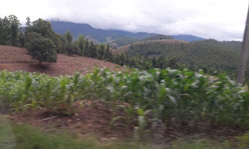 ยิ่งเข้าใกล้เมืองแม่แจ่มยิ่งชัดเจน...ทั้งร่องลอยดินที่ทรุดลงมา...เนินเขาที่ถูกแผ้วถาง....ต้นข้าวโพดที่กำลังเติบโตและเส้นทางขนส่งเล็กๆที่มุ่งสู่เนินเขาหัวโล้น