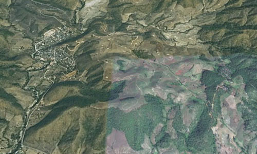 The prominent feature ahead is a mountain with very few remaining trees. Where has the vanished watershed forest gone?